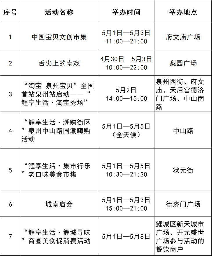 東南網(wǎng)4月27日訊(本網(wǎng)記者 施遠圻 通訊員 許培吟)“五一”小長假即將來襲,你想好要去哪玩了嗎?近日,記者了解到,“五一”期間,鯉城將推出一系列特色文旅活動,力邀八方游客共同解鎖精彩紛呈的文旅盛宴,度過難忘且充滿樂趣的假期。 泉州有戲“藝”起來 特色戲曲演出別錯過 4月30日晚上,“泉州有戲‘藝’起來”啟動儀式專場演出在府文廟廣場舉行,將通過南音與民族器樂的旋律對話,梨園科步程式與時尚街舞的韻律對話,AI機器人與提線木偶的對話,展現(xiàn)古老戲曲與當代科技的巧妙融合,更有文華表演獎、戲劇梅花獎等多位戲曲名家攜手戲曲小傳承人共同演繹精彩片段。 “五一”期間,“泉州有戲·南戲十二時辰”系列演出將為廣大戲迷呈現(xiàn)豐富多彩的南戲劇種經(jīng)典劇目展演,包含梨園戲、五音戲、打城戲、高甲戲、木偶劇等,讓傳統(tǒng)戲劇走進百姓生活,形成“好戲遍地開”的文旅盛景。 音樂潮玩超有料 一起玩轉古城 “∠45°刺桐幻幕”國潮快閃融合掌中木偶、南音、閩南語歌曲演唱等多種形式,將傳統(tǒng)技藝與現(xiàn)代聲光電技術相結合,把中山路的夜空裝點成“一窗一景”的奇幻劇場;“妙音音樂盒”藝人表演以南音、合唱、街舞、非遺民俗等表演為主,采用“室內+戶外”模式,提升古城文藝文化氛圍;《刺桐密鑰:時空迷城》沉浸式劇本游戲以宋代刺桐城為背景,結合街巷的歷史故事、點位打卡與NPC演繹,構建密碼破譯、穿越時空劇本游戲。 刺桐幻幕。鯉城區(qū)融媒體中心 供圖 為了方便廣大市民游客出行,“鯉遇滴滴·惠游全城”活動推出10000份價值20元的出行優(yōu)惠券包(最低6折)。出行優(yōu)惠券包包含6折券1張(封頂20元)、7折券1張(封頂10元)、85折券2張(封頂20元)、95折券2張(封頂20元)。市民游客使用滴滴打車出行時,行程起點或終點設置在鯉城區(qū)域內均可使用。 令人期待的是,樸鯉別苑、樸愫民宿、龍玲公館、吾問東西民宿、芙呈藍山、芙呈茶與器、撫桐民宿、巷里·棲墅民宿、予月民宿 、吾居吾宿、刺桐別苑 、兮遇民宿等12家古城民宿業(yè)主還將邀請古城講解員帶領入住游客到街巷“趴趴走”,每條線路配套劇本殺模式讓游客參與挑戰(zhàn)完成任務,并聘請攝影師全程跟拍,留住美好瞬間。 非遺展演精彩不停 非遺芳華閃耀古城 節(jié)日期間,各類非遺展演將在古城大街小巷輪番上演,讓市民游客在歡聲笑語中領略泉州深厚的文化底蘊。其中,泉州宋江陣結合《水滸傳》中108將人物形象,演繹青獅陣、宋江陣傳統(tǒng)民間特色藝陣、武術以及高甲戲打斗雜耍等,重現(xiàn)泉州“棍棒手撲,妙絕天下”的民俗風采;非遺T臺秀將非遺元素與現(xiàn)代時尚設計巧妙融合,展現(xiàn)非遺獨特魅力。 青獅陣表演。鯉城區(qū)融媒體中心 供圖 開元講古—非遺手作劇場邀請鯉城文史學會專家講解開元寺雙塔的歷史,同時,珠繡非遺傳承人陳克忍作非遺自述,現(xiàn)場開展雙塔珠繡非遺體驗活動?!督z路潮藝》國際當代潮流收藏展以“海絲文脈”為精神錨點,在三個極具符號性的展區(qū)中展開敘事。 上城士“非遺巡游空間”以“樹”為靈感基底,以泉州非遺為核心,為市民游客提供一個沉浸式的文化體驗空間;非遺時尚潮《刺桐FUN》通過“場景再造+活態(tài)傳承+跨界對話”模式,將南音、梨園戲、高甲戲、閩南茶道、香道五大非遺技藝元素進行時尚演繹。請注意,兩項活動均需要付費。 各類市集火熱開市 樂購一觸即發(fā) 中國寶貝文創(chuàng)市集借助淘寶平臺,吸引全國20家手工藝人創(chuàng)新創(chuàng)作,聚焦泉州戲曲、非遺等文化元素,打造聯(lián)名款創(chuàng)意市集,開展非遺產(chǎn)品展示和教學互動。舌尖上的南戲將結合全國南戲展演開展泉州美食體驗?!磅幭砩睢ぬ詫毿銏觥庇商詫毤槲锾孕殠ьI8個IP人偶,沿泉州影劇院廣場—中山中路—打錫街—府文廟西南門等路線巡游,沿途直播推介鴻星爾克、安踏、匹克、名創(chuàng)優(yōu)品等國潮品牌。 “鯉享生活·集市行樂”老口味美食市集一站式打卡“舌尖上的泉州”,活動期間還有公益義診、閩南武術表演、掌中木偶路演、戲曲路演、現(xiàn)代樂隊演出、特色美食、劃拳比賽等。城南廟會打造“匠心傳承·勞動筑夢”主題廟會雙節(jié)聯(lián)動的文化盛宴,通過“非遺活化展演+情景交互體驗+美食文創(chuàng)市集消費”三位一體模式,聚商氣促消費。 城南廟會。鯉城區(qū)融媒體中心 供圖 此外,鯉城還推出各項促消費活動。其中,“鯉享生活·潮購街區(qū)”泉州中山路國潮嗨購活動,聯(lián)動中山路商家開展促消費活動?;顒悠陂g,用戶在指定商家持泉州銀行卡綁定云閃付或持泉州銀行APP出示付款碼/掃描商戶二維碼消費,可享“滿200立減50”、“滿100立減30”、“滿50立減10”、“滿10立減3”四擋立減優(yōu)惠。優(yōu)惠金額總計10萬元。活動期間四檔優(yōu)惠不能疊加使用,“滿200立減50”、“滿100立減30”、“滿50立減10”三檔活動期間單用戶享受1次,“滿10立減3”活動期間單用戶可享受3次。 “鯉享生活·鯉城尋味”商圈美食促消費活動,得到新天城市廣場、開元盛世廣場餐飲商戶的積極參與?;顒悠陂g,用戶登錄招商銀行 APP,進入指定活動頁面,可使用66元購100元的商圈餐飲企業(yè)通兌券。每位用戶在活動期間限購買并使用1 張通兌