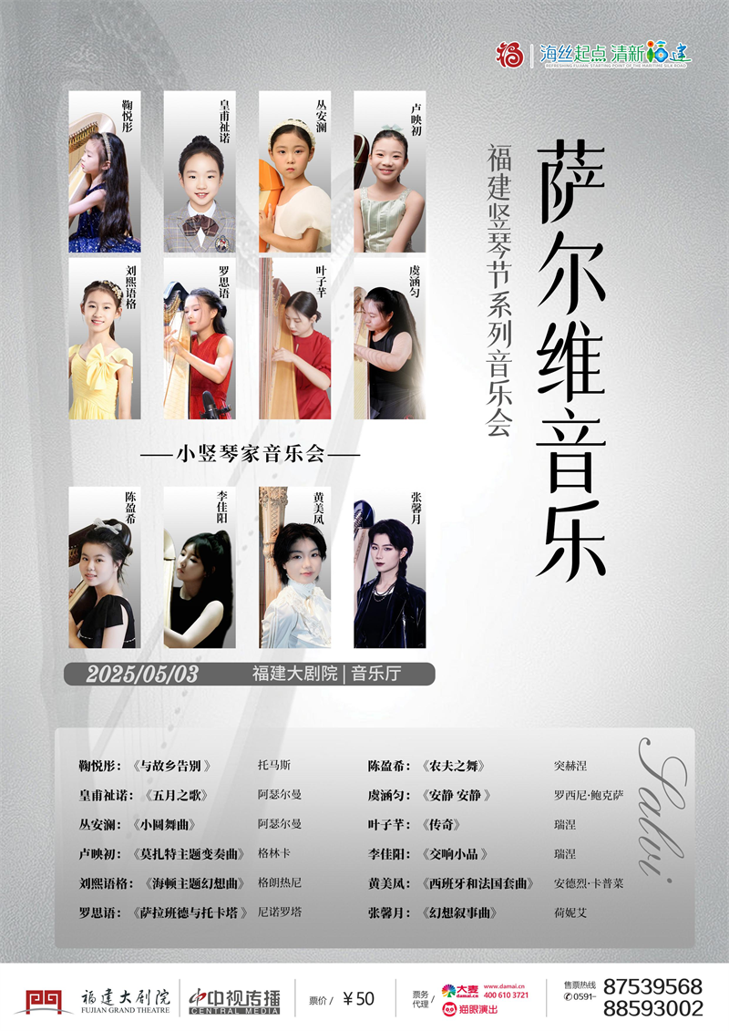 “五一”小長假,福建化身“文藝舞臺(tái)”,用多元藝術(shù)點(diǎn)亮山海。從“閩派”精品到沉浸式演出到美術(shù)展覽,從劇場到景區(qū)到展館,讓您一路山海一路歌,在福山福水間,享福氣福味,體驗(yàn)“山海畫廊,人間福地”之美。 您可以在西湖煙雨畔、名村古厝間邂逅一場“周末戲相逢”;在海岸落日下聽一段海風(fēng)交響音樂會(huì);在茶山云霧中賞一曲南音裊裊;在魚丸、肉燕的煙火氣里品一回評(píng)話伬藝。 “周末戲相逢” 福建優(yōu)質(zhì)文化文藝資源直達(dá)基層 公益性演出活動(dòng) 名稱:“對(duì)口幫扶 花開永定”文旅消費(fèi)市集專場 時(shí)間:5月1日、2日10:00 地點(diǎn):福建省美術(shù)館前廣場 演出單位:省屬六院團(tuán)、永定表演團(tuán)體 名稱:歌舞綜藝專場 時(shí)間:5月3日16:30 地點(diǎn):福州西湖公園晨曦廣場水上舞臺(tái) 演出單位:福建省歌舞劇院 名稱:歌舞綜藝“五四”青年節(jié)專場 時(shí)間:5月4日16:30 地點(diǎn):福州西湖公園晨曦廣場水上舞臺(tái) 演出單位:福建省歌舞劇院 省屬院團(tuán)推薦演出 名稱:《古韻新聲——雜技集萃》精品雜技專場 時(shí)間:5月1、2日15:30 地點(diǎn):福州市工人文化宮 演出單位:福建省雜技團(tuán) 名稱:浸入式戲劇《雀起無聲》 時(shí)間:5月1日-5日 16:00、19:30 地點(diǎn):福州三坊七巷宮巷18號(hào) 演出單位:福建人民藝術(shù)劇院 名稱:浸入式戲劇《風(fēng)起末園》 時(shí)間:5月1日-5日 19:30 地點(diǎn):福州煙臺(tái)山景區(qū)倉觀頂巷8號(hào) 演出單位:福建人民藝術(shù)劇院 名稱:薩爾維音樂福建豎琴節(jié)——豎琴獨(dú)奏音樂會(huì) 時(shí)間:5月1日-3日 20:00 地點(diǎn):福建大劇院音樂廳 主辦單位:薩爾維音樂、福建大劇院、福建藝術(shù)職業(yè)教育學(xué)會(huì)豎琴專業(yè)委員會(huì) 名稱:原創(chuàng)話劇《林則徐》 時(shí)間:5月2、3日 20:00,4日14:00 地點(diǎn):福建大劇院歌劇廳 演出單位:國家大劇院與廣州話劇中心聯(lián)合制作 名稱:2025年羅源縣“閩韻煥彩 溪尾留聲”文化惠民系列活動(dòng) 時(shí)間:5月2日16:00、19:00 地點(diǎn):羅源縣溪尾街 演出單位:福建省實(shí)驗(yàn)閩劇院 名稱:“福見好戲”越劇綜藝 時(shí)間:5月2日 19:00 地點(diǎn):福州煙臺(tái)山景區(qū)倉前路5號(hào) 演出單位:福建芳華越劇院 名稱:“福秀·春”慶祝“五一”國際勞動(dòng)節(jié)專場文藝演出 時(shí)間:5月2日 19:00 地點(diǎn):福建省少兒圖書館前廣場 演出單位:福建省歌舞劇院 名稱:2025年“春燕行動(dòng)”——福建省鄉(xiāng)村音樂會(huì) 時(shí)間:5月3日 16:00 地點(diǎn):福州市連江縣黃岐鎮(zhèn)后沙海濱浴場 演出單位:福建省實(shí)驗(yàn)閩劇院 “泉州有戲 藝起來” 2025全國南戲展演暨第三屆海絲泉州戲劇周 時(shí)間:4月29日-5月5日 地點(diǎn):泉州古城 演出單位:福建省梨園戲傳承中心等 (文末領(lǐng)取具體活動(dòng)日程表)各地市演出推薦 “周末戲相逢” 福建優(yōu)質(zhì)文化文藝資源直達(dá)基層 公益性演出活動(dòng) 福州 時(shí)間:5月1日 10:30 地點(diǎn):福州市閩江之心 演出單位:福州評(píng)話伬藝傳習(xí)所 時(shí)間:5月1日 15:30 地點(diǎn):福州市臺(tái)江區(qū)上下杭廣場戲亭 演出單位:福州評(píng)話伬藝傳習(xí)所 時(shí)間:5月3日 10:00 地點(diǎn):中國船政文化城景區(qū)(輪機(jī)車間內(nèi)) 演出單位:福州市閩都文化藝術(shù)中心、馬尾區(qū)海峽閩劇團(tuán) 時(shí)間:5月3日 15:00 地點(diǎn):福州市臺(tái)江區(qū)上下杭廣場戲亭 演出單位:福州閩劇藝術(shù)傳承發(fā)展中心 廈門 時(shí)間:5月1日 19:20 地點(diǎn):廈門中山路步行街僑批廣場舞臺(tái) 演出單位:廈門市金蓮陞高甲劇團(tuán) 時(shí)間:5月3日 19:00 地點(diǎn):廈門中山路步行街僑批廣場舞臺(tái) 演出單位:廈門歌舞劇院 漳州 時(shí)間:5月3日 16:00 地點(diǎn):漳州市龍文區(qū)閩南水鄉(xiāng) 演出單位:漳州市歌仔戲(薌劇)傳承保護(hù)中心 三明 時(shí)間:5月1日 10:30 地點(diǎn):三明市萬達(dá)廣場 時(shí)間:5月2日、3日 10:30 地點(diǎn):三明市三元區(qū)騰飛廣場 演出單位:三明市歌舞劇院 莆田 時(shí)間:5月1日 15:30 地點(diǎn):莆田市興化府古街三清殿 演出單位:莆田市莆仙戲非遺保護(hù)傳承中心(莆仙戲劇院) 南平 時(shí)間:5月1日、2日 16:30 地點(diǎn):南平市武夷新區(qū)云谷步行街 演出單位:南平市南詞藝術(shù)傳承發(fā)展中心 時(shí)間:5月3日 10:00 地點(diǎn):邵武市熙春公園 演出單位:邵武市三角戲(儺舞)民俗文化研究中心 時(shí)間:5月4日、5日 19:00 地點(diǎn):武夷山三姑度假區(qū)朱子渡廣場 演出單位:武夷山市非物質(zhì)文化遺產(chǎn)展演中心 龍巖 時(shí)間:5月4日 19:30 地點(diǎn):龍巖非遺主題街區(qū) 演出單位:龍巖山歌戲傳習(xí)中心 時(shí)間:5月1日、2日、5日 19:30 地點(diǎn):連城縣四角井歷史文化街區(qū) 演出單位:連城縣木偶藝術(shù)傳習(xí)中心 時(shí)間:5月1日、3日19:30 演出地點(diǎn):武平縣興賢坊興賢樓 演出單位:武平縣漢劇藝術(shù)傳承保護(hù)中心 寧德 時(shí)間:5月1日、2日 10:00、14:00 地點(diǎn):壽寧縣犀溪鎮(zhèn)西浦村 演出單位:壽寧縣北路戲保護(hù)傳承中心 時(shí)間:5月5日 19:00 地點(diǎn):寧德市蕉城區(qū)萬達(dá)廣場 演出單位:寧德市畬族
