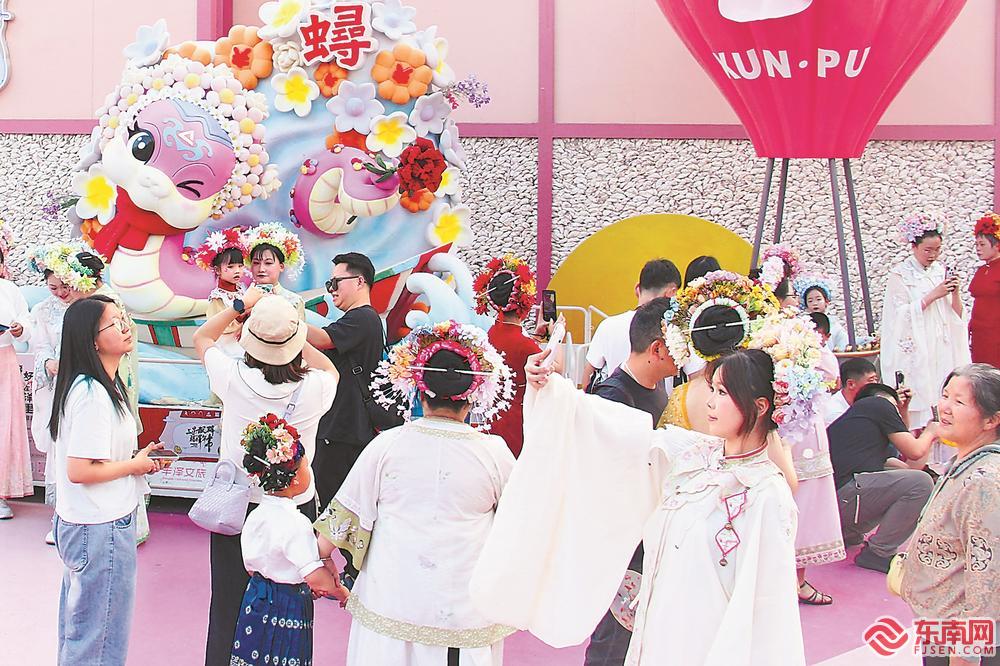 “五一”當(dāng)天,蟳埔迎來(lái)眾多游客打卡拍照。頭戴簪花的游客與村民穿梭在街頭巷尾,整個(gè)村莊宛如“移動(dòng)的花?!?。福建日?qǐng)?bào)記者 莊釗瀅 攝 東南網(wǎng)5月5日訊(福建日?qǐng)?bào)記者 莊釗瀅 通訊員 陳賡嘉) “五一”假期,泉州市豐澤區(qū)東海街道蟳埔村熱度不減,目之所及皆是“移動(dòng)的花?!?。 “今年,蟳埔村推出‘十大提升工程’,力促形成簪花、旅拍、問(wèn)海、巷遇、聽(tīng)音、看戲、品鮮、樂(lè)購(gòu)‘八大體驗(yàn)’?!必S澤區(qū)蟳埔民俗文化村保護(hù)提升指揮部負(fù)責(zé)人告訴記者,蟳埔村剛剛迎來(lái)新一輪蛻變,游客體驗(yàn)區(qū)域得到進(jìn)一步拓寬,面積達(dá)300畝左右。 此次新開(kāi)幕的“簪花里”文旅市集,集簪花攝影、文創(chuàng)集市、美食餐飲、智慧停車(chē)等業(yè)態(tài)于一體?!靶铝料嗟摹疂啥Y蟳物’文創(chuàng)店中,有500多款‘簪花+’文創(chuàng)產(chǎn)品。小到冰箱貼,大到擺件、衣物等,還鏈接了永春香道、德化陶瓷、安溪鐵觀音等各縣(市、區(qū))特色產(chǎn)品?!敝笓]部負(fù)責(zé)人介紹,近期豐澤區(qū)與多家企業(yè)簽約“蟳埔LOGO品牌聯(lián)名”,涉及文創(chuàng)、茶葉、鮮啤、服飾、零食等多個(gè)品類(lèi),蟳埔文化將以更多元、更新穎的形式走進(jìn)大眾視野。 手撫蚵殼厝,在巷中穿梭,掠過(guò)各色簪花,闖入各式鏡頭。記者和北京游客劉女士一同“誤打誤撞”進(jìn)一處“秘境花園”。白色水塔下,一處傳統(tǒng)的石頭厝“生長(zhǎng)”出現(xiàn)代感的拱頂,周邊花團(tuán)錦簇。劉女士喚來(lái)同伴:“這里好看,咱們?cè)谶@多拍幾張照!” “思源水塔是以前蟳埔村的重要供水設(shè)施,位于村子的核心位置,四通八達(dá)的小巷多數(shù)匯聚到這里?!遍偃簟はy花咖啡廳負(fù)責(zé)人告訴記者,這里是新打造的“十大提升工程”之一,是全國(guó)首個(gè)簪花主題咖啡民宿群落,空間集咖啡廳、民宿、茶館、窯烤面包于一體。 一旁的清源茶樓上,樂(lè)器聲叮咚響起,膾炙人口的旋律傳來(lái),引得不少游客循聲而來(lái)。“五一”當(dāng)天,盡管是開(kāi)店首日,店鋪宣傳還未鋪開(kāi),但僅一盞茶的工夫,記者就看到游客紛至沓來(lái),或四處拍照,或閑適坐下。 “過(guò)去,蟳埔村的文旅產(chǎn)業(yè)以簪花和旅拍兩大業(yè)態(tài)為主,較為單一?!敝笓]部負(fù)責(zé)人表示,將以“十大提升工程”為抓手,升級(jí)完善蟳埔村的硬件設(shè)施,持續(xù)推動(dòng)業(yè)態(tài)豐富和游客體驗(yàn)感提升?!白層慰蜑槊谰巴O聛?lái),再為美食坐下來(lái),最后為美居住下來(lái),把游客留在蟳埔?!?/p> 沿著豐海路,新落地的“簪花里”文旅市集、非遺小劇場(chǎng)、騰訊音樂(lè)小屋、蟳花樂(lè)游·游艇碼頭等項(xiàng)目依次排布。從午后到日落,記者看到其間攢動(dòng)的花海始終與海上的粼粼波光相映成趣,游客們意興盎然、流連忘返。據(jù)統(tǒng)計(jì),截至4日,“五一”假期蟳埔村已接待游客超31.5萬(wàn)人次,其中外地游客占比約60%。 |