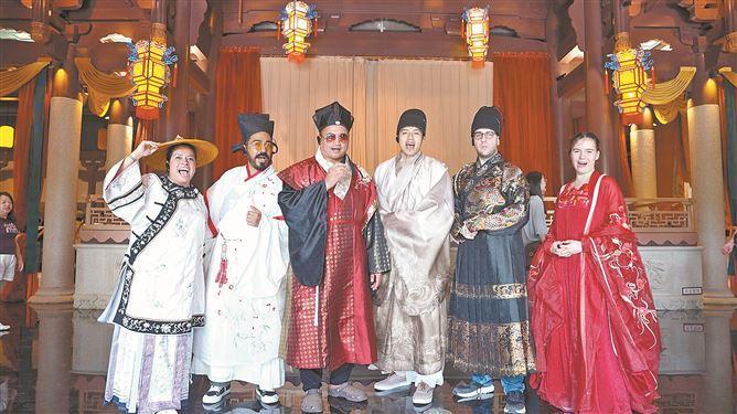 市民游客沉浸式游園。(本報(bào)記者 黃曉珍 攝) “芮吉塔”號(hào)郵輪乘客身穿漢服參與端午主題活動(dòng)。(主辦方 供圖) 廈門日?qǐng)?bào)訊(記者 吳曉菁)端午假期,全國首個(gè)閩南幻境主題景區(qū)——“嶼見閩南·時(shí)光幻境”(以下簡稱“嶼見閩南”)人氣爆棚。昨日,乘坐“芮吉塔”號(hào)郵輪登岸的外籍游客第一時(shí)間走進(jìn)園區(qū),參與端午主題游園,沉浸式體驗(yàn)“可觸摸、可交互、可共情”的閩南文化盛宴。 首批境外郵輪游客沉浸式游園 “芮吉塔”號(hào)郵輪乘客是“嶼見閩南”迎來的首批境外郵輪游客。此次船岸聯(lián)動(dòng)凸顯項(xiàng)目作為“全球閩南文化之窗”的吸引力。 “Amazing!”在園區(qū)里,外籍游客驚嘆連連。他們穿梭于三大演區(qū)、八大街區(qū)中,觀看非遺技藝表演,與身著傳統(tǒng)服飾的NPC互動(dòng)合影,并陶醉在閩南小吃的誘人香氣里。郵輪游客還換上中國傳統(tǒng)服飾,深度體驗(yàn)端午節(jié)限定的主題游園。 意大利游客盧卡·扎卡里說,“嶼見閩南”讓他記憶深刻。他在手機(jī)里錄下了“千年回響”的演繹視頻,也拍下了紅磚古厝等閩南建筑和主題游園過程?!按┲袊鴤鹘y(tǒng)服裝過中國節(jié)日,還和披著盔甲的‘中國將軍’互動(dòng),我覺得很有意思。”他說。 據(jù)悉,“嶼見閩南”5月17日開業(yè)后,不僅日均流量超出預(yù)期,更揭開港航文旅深度融合的新篇章,進(jìn)一步提升廈門國際郵輪母港的競(jìng)爭(zhēng)力和吸引力。今年下半年廈門國際郵輪母港將陸續(xù)迎來“招商伊敦”號(hào)、“威斯特丹”號(hào)和“七海探險(xiǎn)家”號(hào)等國際豪華郵輪,并作為母港啟航兩條特色“海絲”郵輪長航線。 打造年輕多元的閩南文化之窗 “天有多大,海有多闊,討海的人,趕潮落水,希望有魚來入網(wǎng)……”簡單的旋律,樸素的閩南話歌詞,配上美妙的合唱,廈門六中合唱團(tuán)昨日在“嶼見閩南”現(xiàn)場(chǎng)演繹閩南民謠《魚歌》。合唱團(tuán)成員坐在道具漁船邊,以純凈的人聲合唱為核心,結(jié)合響指、拍掌、跺腳等方式,編織出一幅生動(dòng)立體的聲音畫卷。 這場(chǎng)獨(dú)特的表演讓在場(chǎng)的游客耳目一新,不少人舉起手機(jī)記錄這動(dòng)人一幕。游客李先生感嘆道:“雖然歌詞聽不太懂,但那種韻律和孩子們投入的表演,真的讓我‘聽’到了海的感覺,特別有感染力!” “嶼見閩南”項(xiàng)目副總經(jīng)理黃濤表示,“端午假期,我們特別聯(lián)動(dòng)廈門六中這樣的優(yōu)秀學(xué)校團(tuán)體,就是希望能打造一個(gè)開放、多元、充滿活力的閩南文化傳播平臺(tái)。孩子們用年輕的方式詮釋傳統(tǒng),賦予了閩南文化新的時(shí)代氣息,效果特別好。未來,‘嶼見閩南’將持續(xù)開放懷抱,歡迎更多力量加入,共同探索和創(chuàng)新閩南文化的現(xiàn)代表達(dá)。” |