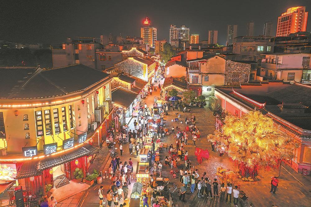 瓦子街夜色(上杭縣融媒體中心供圖) 東南網(wǎng)8月21日報(bào)道(福建日報(bào)記者 羅小春 徐士媛 通訊員 陳發(fā)玉 林斯乾) 伴著夏夜微風(fēng),每晚6時(shí)許,位于汀江之畔的上杭瓦子街便逐漸熱鬧起來。 在瓦子街南廣場,只見一座4米多高的圓環(huán)形金榜題名燈籠架在夜色中格外亮眼,紅綢燈面在燈帶的映照下泛著暖光,吸引眾多市民駐足觀看、合影留念;瓦子街南廣場邊上,古色古香的上杭文廟正舉辦“‘共書兩岸情 濡墨一家親’杭臺客家家訓(xùn)文化書畫展”活動(dòng),參加活動(dòng)的游客絡(luò)繹不絕…… “一條瓦子街,半部上杭史。”位于汀江北岸的瓦子街總長1135米,是省級歷史文化街區(qū),這里不僅有流芳牌坊、太忠廟、文廟、丘氏總祠、丁狀元舊居等古跡,還引進(jìn)了茶館、地方美食、休閑餐飲、糕點(diǎn)烘焙、陶藝研學(xué)、文化創(chuàng)意等業(yè)態(tài),逐步形成集“游、娛、吃、購、商、服、學(xué)”于一體的夜經(jīng)濟(jì)商圈。 “這是由古田福果、肉甲子、肉圓、艾葉粄、野菜煎餅等上杭風(fēng)味小吃組成的‘萬福攸同’小吃拼盤?!痹谝患颐麨椤皟?yōu)食祿”的餐飲店里,店主陳文正忙著為客人介紹招牌菜。這家餐館主打當(dāng)?shù)乜图姨厣朗?,頗受游客青睞?!斑@兩年,瓦子街變得越來越熱鬧了,這為我們帶來了不少客流?!标愇恼f。 離“優(yōu)食祿”不遠(yuǎn),便是上杭首個(gè)老字號傳統(tǒng)技藝傳承館——“吳贊玉·上杭蘿卜干”傳統(tǒng)技藝傳承館的所在地。店內(nèi),“吳贊玉”上杭蘿卜干第三代傳承人吳旭正在給客人介紹剛開壇的蘿卜干制品?!拔覀儼褌鞒叙^開在瓦子街,就是為了讓更多人了解老字號、愛上老品牌?!?/p> 隨著上杭夜經(jīng)濟(jì)的活躍,不僅傳統(tǒng)的土特產(chǎn)店、老字號店“復(fù)活”了,越來越“潮”的新店也悄然出現(xiàn),為老街帶來了新時(shí)尚。 記者走進(jìn)一家名叫“禮遇杭川”的國營文創(chuàng)店,店員王女士熱情地介紹起店內(nèi)情況:“店鋪于今年5月1日開業(yè),是福建省博物館文創(chuàng)聯(lián)盟的首家分店,希望能給上杭市民和來此休閑的游客提供構(gòu)思精巧、制作精美的各種文創(chuàng)產(chǎn)品。” “我很喜歡上杭,特別是瓦子街,既有復(fù)古特色,又有現(xiàn)代氣息?!迸阃瑑鹤忧皝韰⒓?025年全國青少年體育聯(lián)合會青少兒羽毛球巡回賽(福建上杭站)的泉州游客邱先生說。 據(jù)統(tǒng)計(jì),在新活動(dòng)與新業(yè)態(tài)的雙重賦能下,上杭的文旅經(jīng)濟(jì)展現(xiàn)出強(qiáng)勁的發(fā)展勢頭。今年7月1日至8月15日,僅瓦子街便接待游客23萬人次,實(shí)現(xiàn)旅游收入約1.3億元;今年上半年,上杭縣接待游客650萬人次,同比增長12.1%,旅游總收入約58億元,同比增長11.9%。 “下一步,我們將依托本地歷史與文化資源,通過‘體育+文旅’的形式,串聯(lián)瓦子街、江濱路、臨江樓片區(qū)、解放路等商業(yè)區(qū),打造集文化、旅游、休閑、美食等于一體的開放性歷史文化街區(qū)和夜經(jīng)濟(jì)主題商圈?!鄙虾伎h文化體育和旅游局局長溫文達(dá)表示。 |