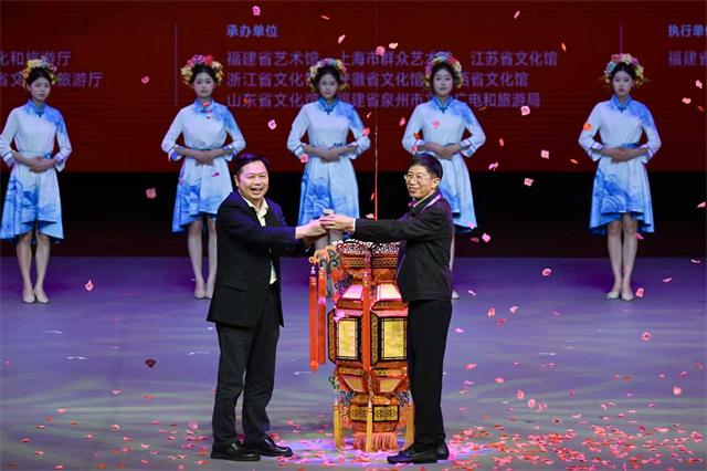 戲聚八閩,好戲連臺(tái)。11月13日,為期4天的第五屆華東六省一市現(xiàn)代地方小戲大賽在福建泉州圓滿收官。來自華東六省一市的原創(chuàng)現(xiàn)代地方小戲同臺(tái)競(jìng)技,產(chǎn)生了3個(gè)大獎(jiǎng)、8個(gè)金獎(jiǎng)和21個(gè)銀獎(jiǎng)。 當(dāng)晚,大賽頒獎(jiǎng)晚會(huì)暨惠民演出在泉州大劇院精彩上演。福建省文化和旅游廳黨組成員、副廳長(zhǎng)吳新斌,上海市文化和旅游局副局長(zhǎng)廖燕靈,江西省文化和旅游廳二級(jí)巡視員楊丁,泉州市人民政府副市長(zhǎng)黃文捷,以及華東六省一市文旅系統(tǒng)相關(guān)領(lǐng)導(dǎo)嘉賓出席活動(dòng),并為獲獎(jiǎng)節(jié)目頒獎(jiǎng)。