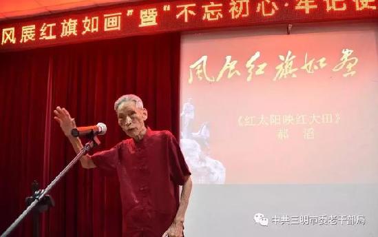 96歲抗戰(zhàn)老兵郝滔在宣講 圖片來源:三明日?qǐng)?bào) 不忘初心使命當(dāng)好薪火傳人 “革命烈士林大蕃拋頭顱、灑熱血,換來我們今天的幸福生活,作為96歲的幸存者,我有理由有必要把這段紅色歷史講解好,讓更多的人牢記,好好學(xué)習(xí)、好好工作,干好每一天……”抗戰(zhàn)老兵郝滔是此次紅色三明故事宣講比賽中最年長(zhǎng)的選手,比賽中,郝老全程站立脫稿演講,由他原創(chuàng)的紅色三明故事《紅色太陽映紅大田》,條理清晰、激情澎湃,把感人的紅色故事和自己的“初心”與“使命”一一呈現(xiàn),催人淚下。 “我很真切地感受到了那件棉衣真的好溫暖。這次參加紅色三明故事宣講,讓我對(duì)革命先輩的英雄事跡有了更多更深的了解,我一定好好珍惜現(xiàn)在的幸福生活,好好學(xué)習(xí),做新時(shí)代的好少年。”10歲的戴晨希是年齡最小的參賽者,比賽中她娓娓道來《一件棉衣》,獲得了全市總決賽學(xué)校組二等獎(jiǎng)。 “收條中提到的肖瑞蘭同志是我的外公……這張‘紅色’收條,它傳承著紅色基因,凝聚著紅軍的汗水,飽含著建寧人民對(duì)毛主席的深情,也寄托著領(lǐng)袖對(duì)建寧老區(qū)人民的厚愛。雖然外公離開我們多年,但外婆常用外公在世時(shí)說過的話要求我們:‘要聽黨的話,要做對(duì)國家和社會(huì)有用的人。’在這份初心的感召下,外公外婆的子孫后輩們?cè)诟髯缘墓ぷ鲘徫簧戏e極進(jìn)取,努力踐行著聽黨話、跟黨走的誓言?!边x手林菲宣講的《一張“紅色”收條》,深深打動(dòng)了在場(chǎng)觀眾。 尤溪縣坂面鎮(zhèn)京口村是三明市首批“中央紅軍村”,閩贛省機(jī)關(guān)曾在這里開展艱苦斗爭(zhēng),京口村的紅色故事宣講活動(dòng)就在閩贛省蘇維埃政府舊址舉辦。一個(gè)個(gè)感人故事把閩贛省機(jī)關(guān)以及紅軍戰(zhàn)士在尤溪的戰(zhàn)斗事跡娓娓道來。觀眾們紛紛表示,要持續(xù)把京口村的紅色傳統(tǒng)發(fā)揚(yáng)好、把紅色基因傳承好、把紅色資源利用好,打響“風(fēng)展紅旗如畫”紅色品牌?!斑@里是個(gè)神圣的地方,我對(duì)這里充滿了信心,相信在黨的領(lǐng)導(dǎo)下,我們京口村村民的生活一定會(huì)越來越好。”京口村宣講員張上才激動(dòng)地說。 不論是普通黨員干部還是烈士后人,不論是在革命遺址還是場(chǎng)館舞臺(tái),紅色故事被一遍遍深情講述,三明兒女在共同感受信仰光芒中堅(jiān)定傳承榜樣力量的決心。