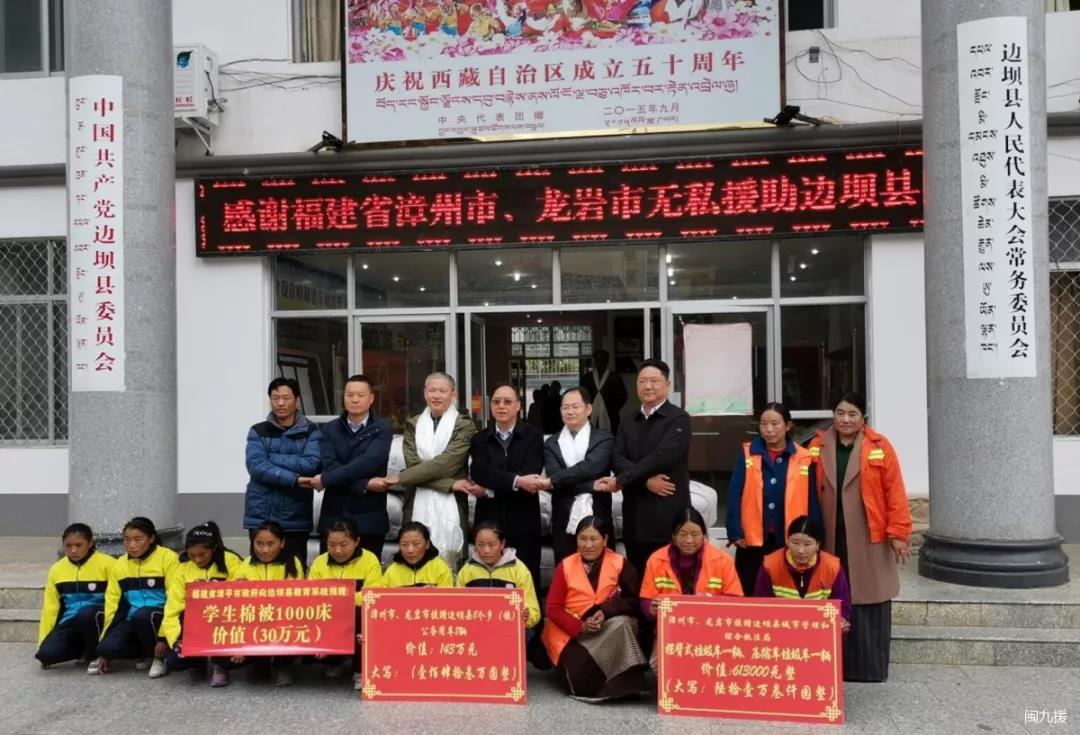捐贈活動 圖片來源:福建第九批援藏隊 九龍江發(fā)源于龍巖,貫穿漳州,在廈門港對岸注入臺灣海峽。自古以來,她就以博大的胸懷,孕育滋養(yǎng)著龍巖、漳州兩市淳樸、善良、博愛的千百萬人民。11月1日上午,福建省第九批援藏工作隊邊壩工作組領(lǐng)隊陳良斌同志、副領(lǐng)隊張志祥同志代表遠在千里之外的漳州市委、市政府和龍巖市委、市政府以及漳平市委、市政府,向所援助的邊壩縣中學(xué)援贈了棉被1000床(價值30萬元)、向縣城市管理局援贈了垃圾車2輛(價值61.3萬元)、向8個鄉(xiāng)鎮(zhèn)援贈了公務(wù)用車8輛(價值143萬元)。此次捐贈活動儀式由邊壩縣政府夏冰縣長主持,政府副縣長仲鵬春、洛松銀巴代表縣政府接受援贈,同時閩九援藏工作隊成員、縣相關(guān)部門負責(zé)同志、師生代表及環(huán)衛(wèi)工人代表也參加了此次捐贈活動。 受到捐贈的部門和鄉(xiāng)鎮(zhèn)表示:決不辜負漳州、龍巖兩市干部群眾的深情厚愛,將以此次捐贈活動為動力,結(jié)合“不忘初心、牢記使命”主題教育,進一步創(chuàng)新工作舉措、狠抓工作落實,開拓進取、攻堅克難,在推動邊壩長足發(fā)展和長治久安進程中貢獻自己的力量,為邊壩與全國全區(qū)全市一道全面建成小康社會不懈努力。 夏冰縣長總結(jié)道,此次活動充分體現(xiàn)了福建省漳州市、龍巖市對邊壩工作的高度重視,對邊壩縣各族干部群眾的親切關(guān)懷,使邊壩縣各族干部群眾倍感溫暖、倍感鼓舞,堅定了全面建成小康社會的信心和決心。 最后,在場領(lǐng)導(dǎo)、受援贈的單位負責(zé)人一起進行手拉手合影留念。 閩九援邊壩工作組 |