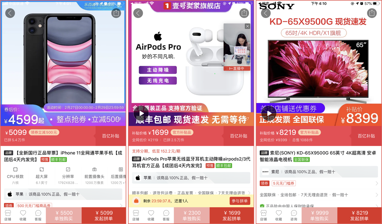 拼多多上線“百億補貼節(jié)”:索尼4K電視6折 iPhone11直降1400元