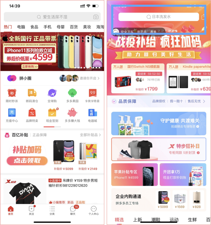 ▲通過拼多多首頁即可進入“百億補貼節(jié)” 活動專區(qū),消費者可以直接在專區(qū)中搜索想要購買的補貼商品。 目前,參與此次活動補貼的商品包括了抗疫物資、數(shù)碼、美妝、運動服飾、母嬰等多個類目,熱門商品既有蘋果手機、戴森等常青型商品,也包括了MAC口紅、海藍之謎、椰子鞋、紙尿褲等。 其中,考慮到消費者復工的實際需求,拼多多在“百億補貼節(jié)“專門設(shè)置了防疫商品專區(qū),平價口罩每日上線,“有多少貨我們就補貼多少,確保消費者復工安全”。 隨著各地逐漸復工,消費者的購物熱情正在反彈。 拼多多提供的數(shù)據(jù)顯示,iPhone11系列手機平臺補貼后最高降價1400元,從2月27日零點至中午12點,蘋果手機已售出超過5萬臺,目前仍在補貨中;而平臺補貼后僅為1699元,跌破歷史最低價的AirPods Pro更是經(jīng)歷了五次緊急補貨,12個小時內(nèi)累計銷售了25000件。