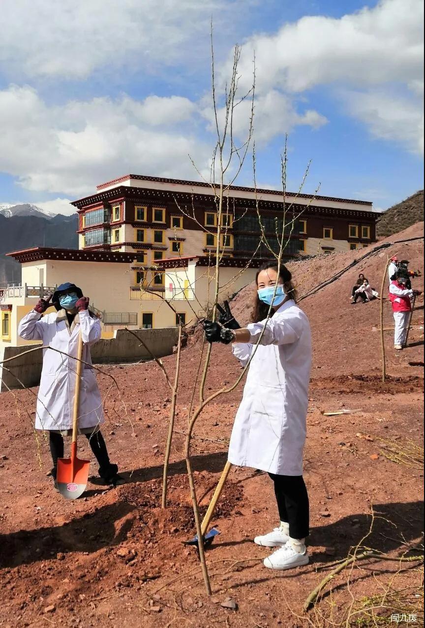 2020年3月20日,正值春分,萬物共生,平衡有序?!熬G水青山就是金山銀山?!?,謹(jǐn)記著習(xí)近平總書記的科學(xué)論斷,響應(yīng)國土綠化行動(dòng),建設(shè)大美西藏昌都,昌都市婦幼保健院的藏漢同事開展了一場(chǎng)別開生面的植樹造林活動(dòng)。 當(dāng)天上午,在福建援建的昌都市婦幼保健院新院,福建援藏醫(yī)療隊(duì)員和本地的藏族同事們一起到達(dá)新院的后山,有序開展植樹造林活動(dòng)。大家熱情高漲,合理分工,有效配合,在當(dāng)?shù)亓謽I(yè)部門有關(guān)人員指導(dǎo)下,科學(xué)完成了選址,挖坑,植苗,澆水等的種樹步驟。在西藏,由于生存環(huán)境的惡劣,樹苗的存活率比較低。我們?cè)仃?duì)員缺乏高原植樹經(jīng)驗(yàn),頻頻遇到困難,比如在掘坑過程中,我們發(fā)現(xiàn)這邊的土壤常常是土石混合,盲目用力,挖掘器械都折斷了,藏族同胞羅布同志拿來一根鐵棍,熟練的示范著如何探索避開這些碎石,不一會(huì)功夫,一個(gè)1米的大坑就形成了。就這樣藏漢同胞們互相交流著,行動(dòng)著,沒有語言的障礙,沒有思想的隔閡,鐵鍬和鏟子此起彼落,歡聲與笑語交互縈繞,構(gòu)成了一幅幅“藏漢一家親,閩昌根連根”的和諧畫面。 美好的綠色家園