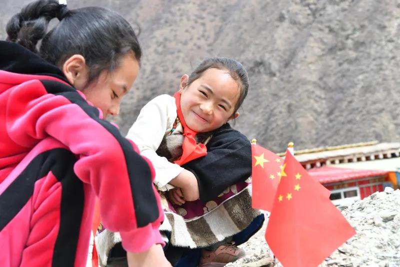 普巴的孫女面對(duì)鏡頭露出燦爛的笑容。 “1959年西藏民主改革前,農(nóng)奴只是‘會(huì)說話的工具’;民主改革后,我們?nèi)迦硕挤值酵恋兀?dāng)時(shí)我們家有五口人,分到九畝地、三頭黃牛,也分到草場(chǎng)。中國共產(chǎn)黨帶領(lǐng)我們過上了幸福的生活!”有著50年黨齡的他,一大早就帶著孫子、孫女來到天臺(tái),換上新國旗,慶祝西藏百萬農(nóng)奴解放紀(jì)念日。