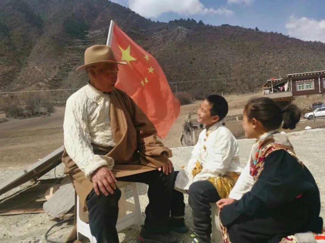 從升起西藏第一面五星紅旗,到家家戶戶掛國(guó)旗 風(fēng)展紅旗滿目艷 3月21日,記者走進(jìn)江達(dá)縣崗?fù)墟?zhèn)崗?fù)写宕迕衿瞻图摇?8歲的普巴,正和10歲的孫子普布次仁、7歲的孫女江擁卓瑪在天臺(tái)曬太陽。天臺(tái)上,一面五星紅旗迎風(fēng)飄揚(yáng)。 普巴望著村莊不遠(yuǎn)處的金沙江,饒有興致地跟普布次仁、江擁卓瑪講述十八軍渡江打響昌都戰(zhàn)役的故事。正是在與他們相仿的年齡,普巴人生第一次看到五星紅旗…… “覺得它特別好看” 位于金沙江畔的崗?fù)写?,與四川省甘孜藏族自治州德格縣隔江相望,是從四川入藏的咽喉要塞。
