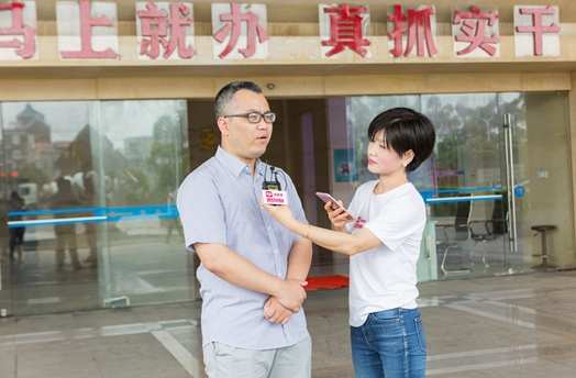 ▲5月8日,拼多多“百億補(bǔ)貼”官方主播阿歡在中國(guó)(福建)自由貿(mào)易試驗(yàn)區(qū)門(mén)口,向直播間的觀眾問(wèn)好。張冰 攝