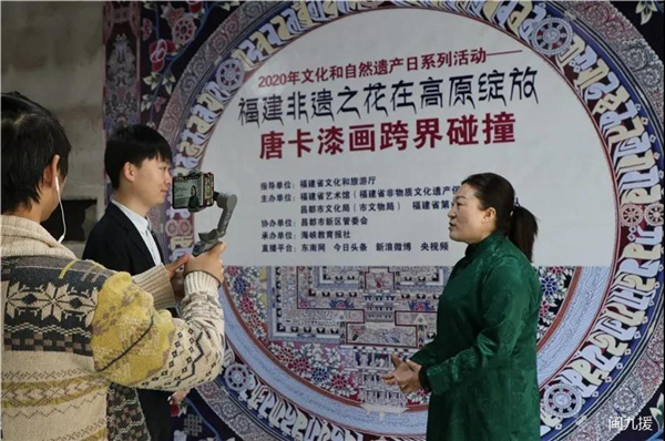 4日上午,2020年文化和自然遺產(chǎn)日系列活動——“福建非遺之花高原綻放”唐卡漆畫跨界碰撞連線直播活動在福州、昌都兩地舉辦。