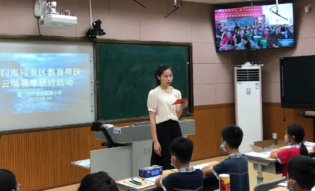 艾草萋萋門前掛,粽葉迷香萬里傳;云端相聚研教學,名師引領鑄初心。6月24日,端午佳節(jié)之際,同安區(qū)對口教育幫扶觀摩研討活動在同安區(qū)新星小學主會場和左貢縣旺達鎮(zhèn)小學(廈門援建)分會場隆重舉行。此次“遠程智慧課堂”觀摩研討系列活動是在廈門市同安區(qū)教育局的大力支持下,由廈門鑄遠集團提供技術保障,左貢縣教育(體育)局教研室和同安區(qū)新星小學聯(lián)合承辦的教育幫扶數(shù)學專場,參加對象包括廈門市同安區(qū)新星小學、漳州市詔安縣四都小學、甘肅省康樂縣道家小學、草灘小學、西藏左貢縣各小學的數(shù)學教師。福建省優(yōu)秀教師、省學科帶頭人、廈門市專家型教師林傳忠、 左貢縣教育局副局長李永昌、廈門鑄遠集團總經(jīng)理戴巖、同安區(qū)新星小學校長葉福泉及學校行政領導出席活動,新星小學林麗紅老師主持。
