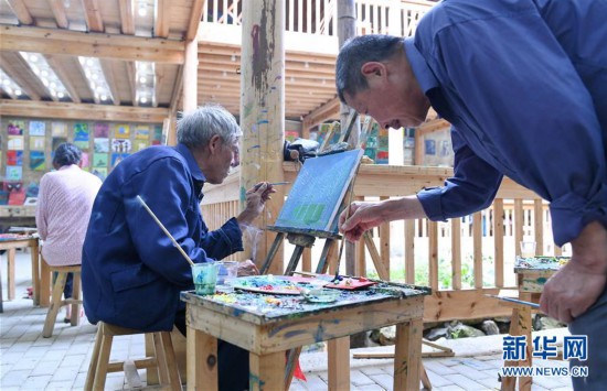 老人在“龍?zhí)豆嫠囆g(shù)教育中心”畫(huà)畫(huà)(6月11日攝)。 新華社記者 林善傳 攝