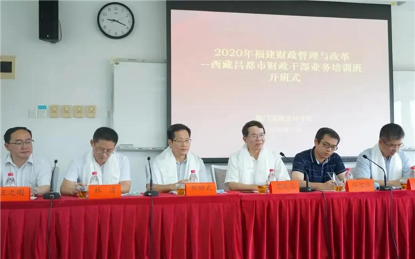 2020年福建財政管理與改革 西藏昌都市財政干部業(yè)務(wù)培訓(xùn)班順利開班 7月6日,2020年福建財政管理與改革——西藏昌都市財政干部業(yè)務(wù)培訓(xùn)班開班式在學(xué)院順利舉行。廈門國家會計學(xué)院黃世忠院長、福建省財政廳林貽武副廳長、林清處長、張翼飛主任、西藏昌都市財政局張愈結(jié)副局長、王之剛副局長出席開班式,開班式由福建省財政廳林清處長主持。
