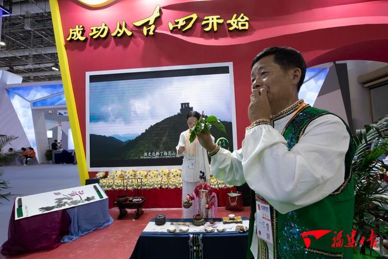 上杭縣古田展區(qū),傳統(tǒng)的樹葉吹奏技藝和客家提線木偶表演亮相。(福建日報記者 王毅 攝影報道)