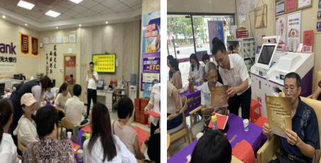 國貨路支行:9月11日、9月15日19:00-20:00開展兩場線下金融知識沙龍活動,邀請周邊居民到網(wǎng)點參加,結合時事案例,向到場居民介紹了“預防電信詐騙”、“理性投資”、“存款保險制度”等相關金融知識。