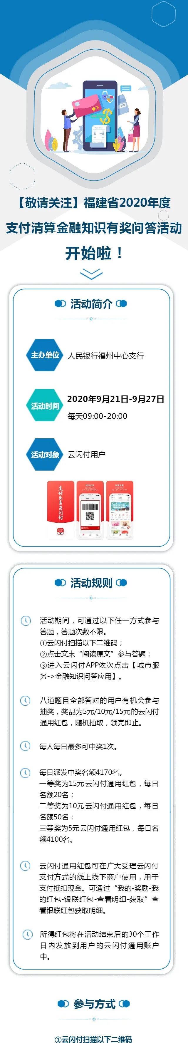 【敬請(qǐng)關(guān)注】福建省2020年度支付清算金融知識(shí)有獎(jiǎng)問(wèn)答活動(dòng)開(kāi)始啦!