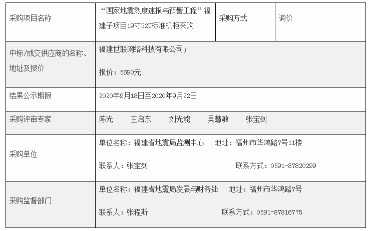 監(jiān)測(cè)中心國(guó)家地震烈度速報(bào)與預(yù)警工程福建子項(xiàng)目標(biāo)準(zhǔn)機(jī)柜采購(gòu)結(jié)果公示
