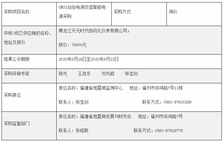 監(jiān)測中心GNSS臺站電源改造智能電源采購結(jié)果公示