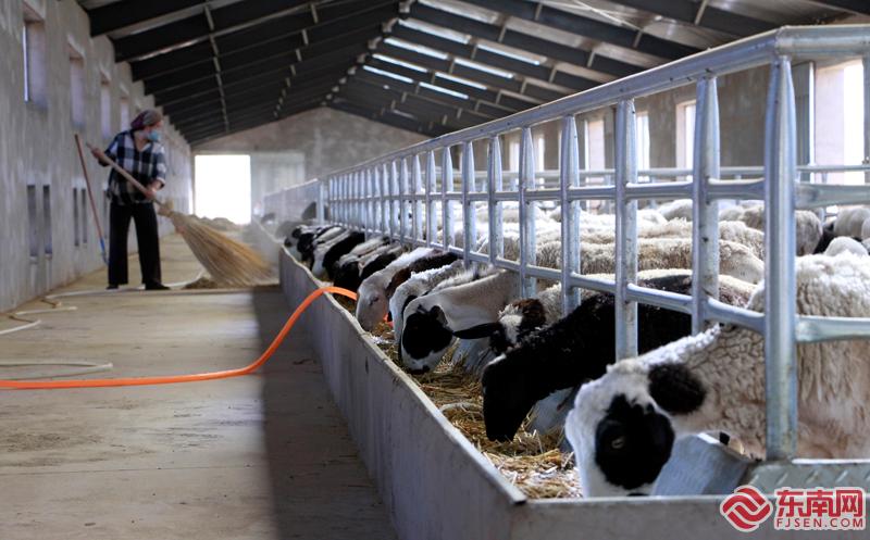 工人們正在清理羊圈,并為羊添加飼料。東南網(wǎng)記者 顏財(cái)斌 攝