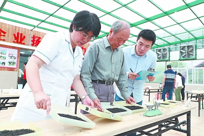 茶葉專家在比較茶葉品質(zhì)。福建日?qǐng)?bào)記者黃起青 攝