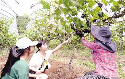 游客在建甌市迪口鎮(zhèn)葡萄風(fēng)情小鎮(zhèn)采摘葡萄。近年來,建甌市利用優(yōu)越的生態(tài)環(huán)境資源優(yōu)勢,大力推廣葡萄標(biāo)準(zhǔn)化種植,提升果品品質(zhì),葡萄獲得福建省著名商標(biāo)、國家綠色食品產(chǎn)地和產(chǎn)品認(rèn)證、全國優(yōu)質(zhì)葡萄評比金獎(jiǎng)。截至目前,該市葡萄種植面積達(dá)3萬多畝,年產(chǎn)量4萬多噸,產(chǎn)值3億元以上。 (閩北日報(bào)記者:魏劍生 劉兆溦 攝)