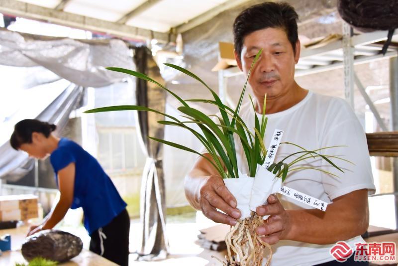 東方村芳香蘭蒲的線上訂單量絡(luò)繹不絕,工作人員正在抓緊時間打包蘭花,準備發(fā)出。東南網(wǎng)記者 簡慧玲 攝
