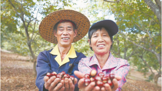 國慶期間,正是錐栗采摘時(shí)節(jié),黃佛福和妻子每天都早出晚歸搶收。“今年家里錐栗每公斤收購價(jià)12塊多,預(yù)計(jì)有近萬元收入?!秉S佛福說。