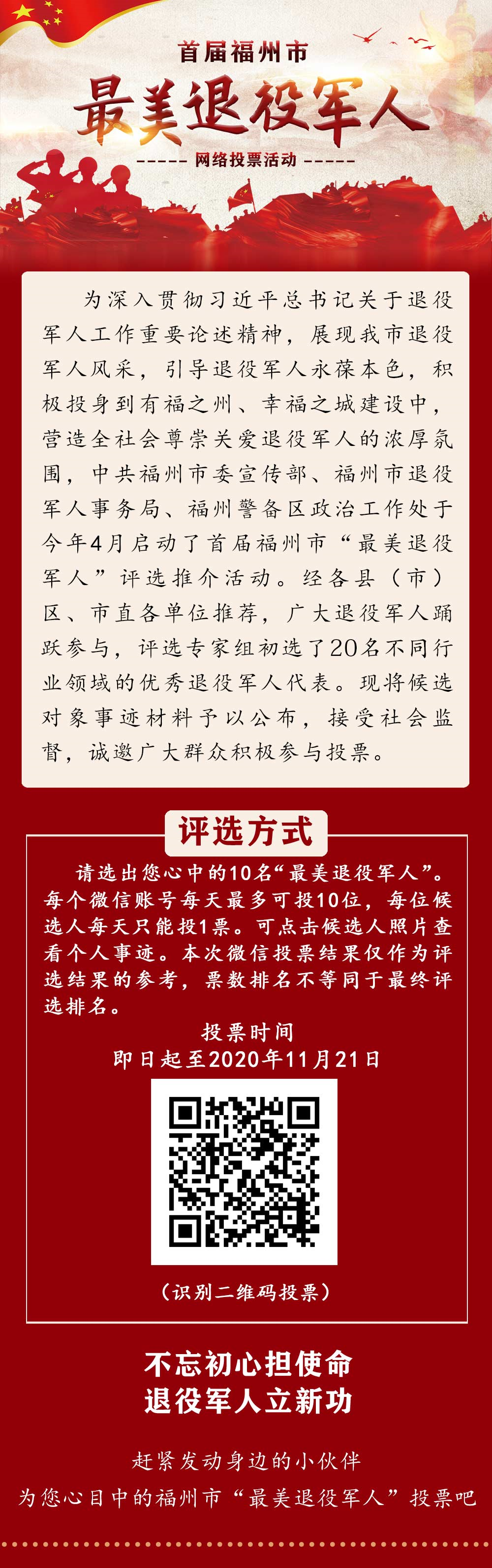 首屆福州市“最美退役軍人”網(wǎng)絡(luò)投票活動開始,一起來參與……