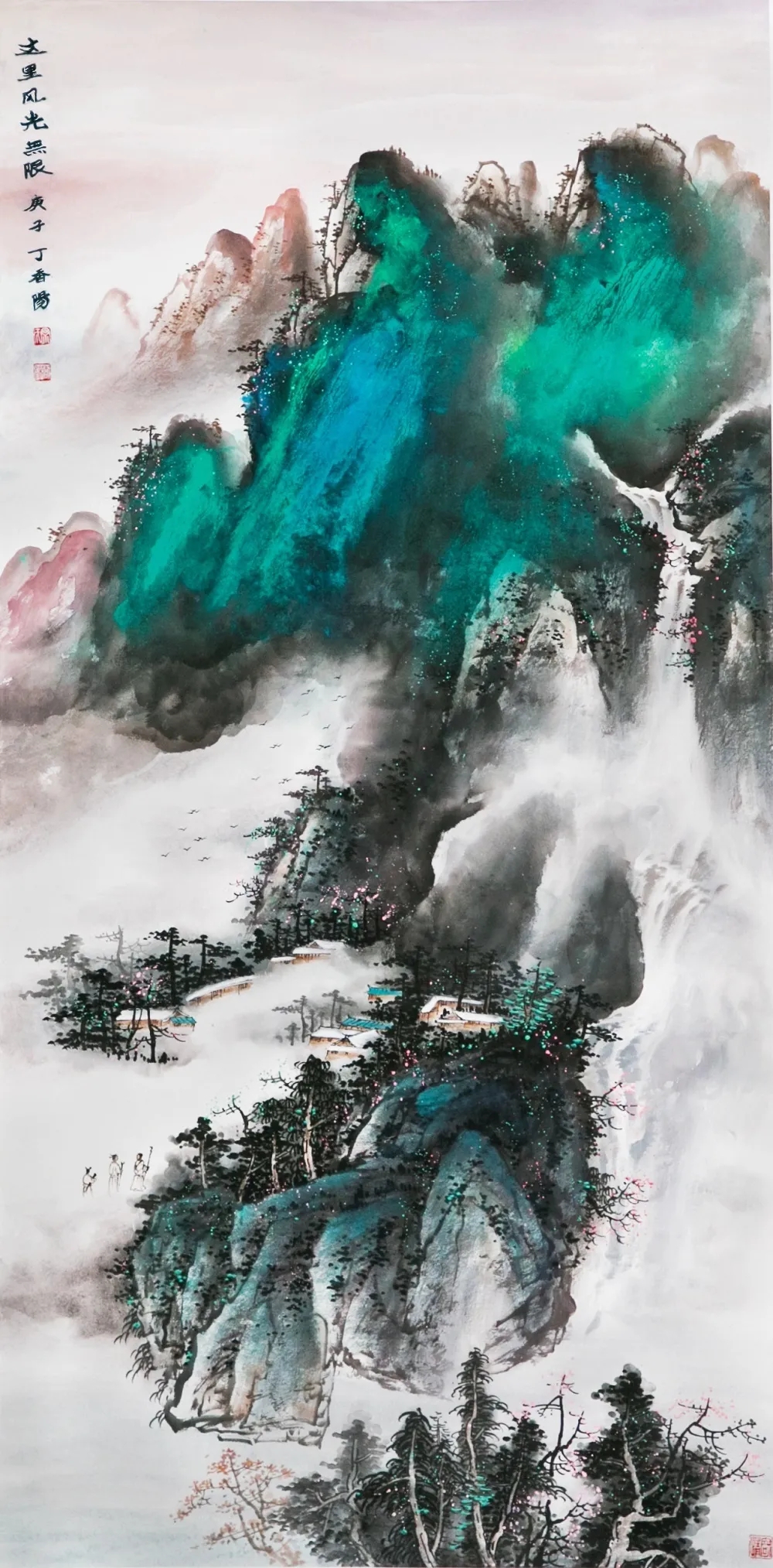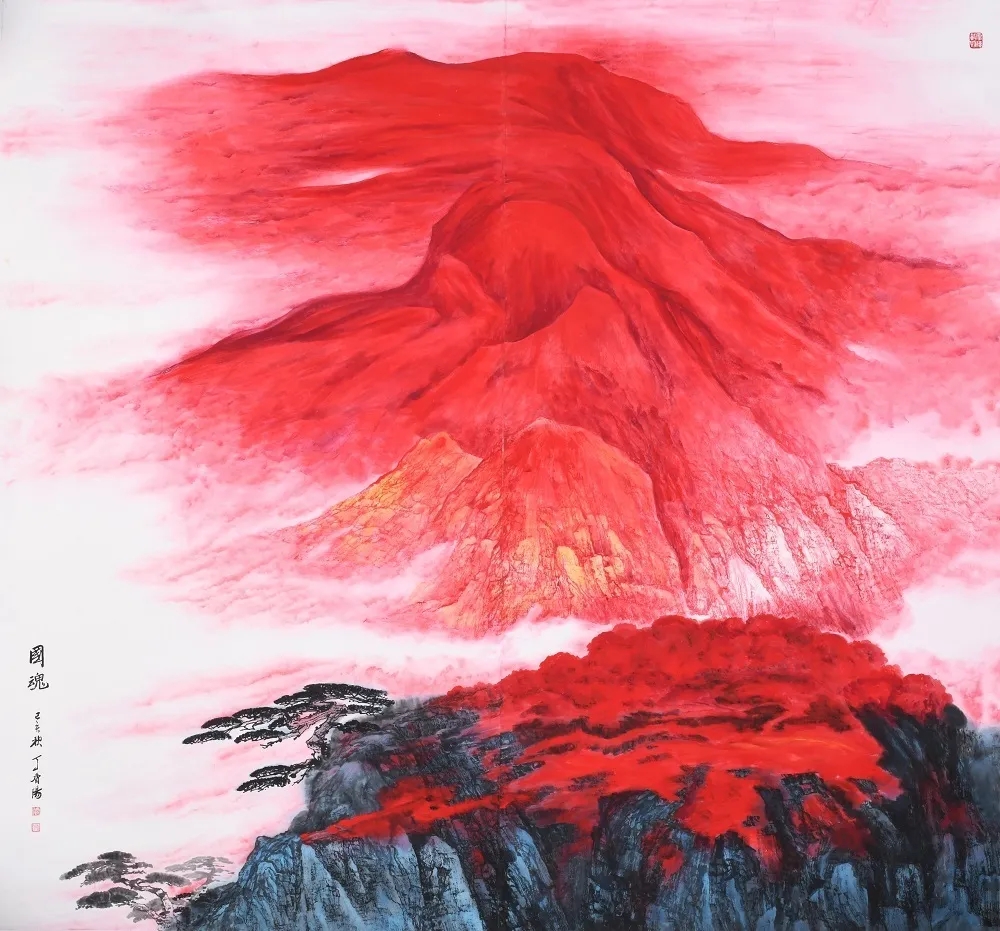 《國(guó)魂》192x180cm 雖然畫中山水靈感源自真實(shí)山水,但又不同于真實(shí)景致,與之相比則有了更多浪漫的詩(shī)意。畫中的一山一水皆是畫者內(nèi)在情感的自然流露,大膽的用色、別致的構(gòu)圖以及超自然的造型,讓畫面彰顯出旺盛的生命力和特有的秩序美。 據(jù)介紹,丁香陽(yáng),1950年2月27日生,山東省榮成市人,號(hào)瀾鳴軒主人,國(guó)家一級(jí)美術(shù)師、山東省國(guó)畫院常務(wù)理事兼副秘書長(zhǎng)、威海市渤海書畫院院長(zhǎng)。2018年考入由現(xiàn)代水墨之父劉國(guó)松領(lǐng)銜擔(dān)綱的首屆“當(dāng)代水墨藝術(shù)研究院”高峰班學(xué)習(xí)。曾在《山東藝術(shù)》《中國(guó)美術(shù)雜志》和《中國(guó)書畫雜志》等國(guó)家核心刊物上發(fā)表美術(shù)理論文章多篇。 2018年,分別在榮成、威海、濟(jì)南等地舉辦個(gè)人畫展。2019年,與“現(xiàn)代水墨之父”劉國(guó)松教授弟子在上海舉辦聯(lián)展。2019年12月21日至24日,在北京山水美術(shù)館舉辦個(gè)展。2019年9月和2020年9月,先后兩次在翰墨(青州)中國(guó)書畫年會(huì)舉辦個(gè)人畫展。