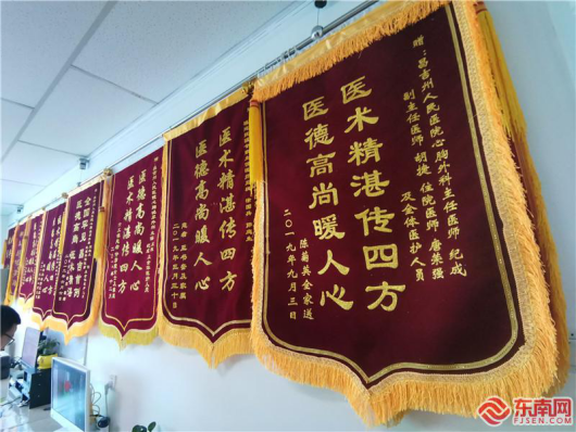 昌吉州人民醫(yī)院的心胸外科辦公室掛滿了患者送來的錦旗。 東南網(wǎng)記者 周桂枝攝