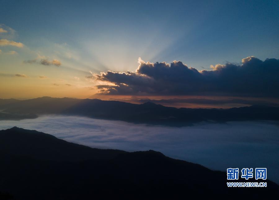 這是11月20日拍攝的福建省三明市將樂縣國家級自然保護區(qū)云海日出(無人機照片)。新華社記者 宋為偉 攝