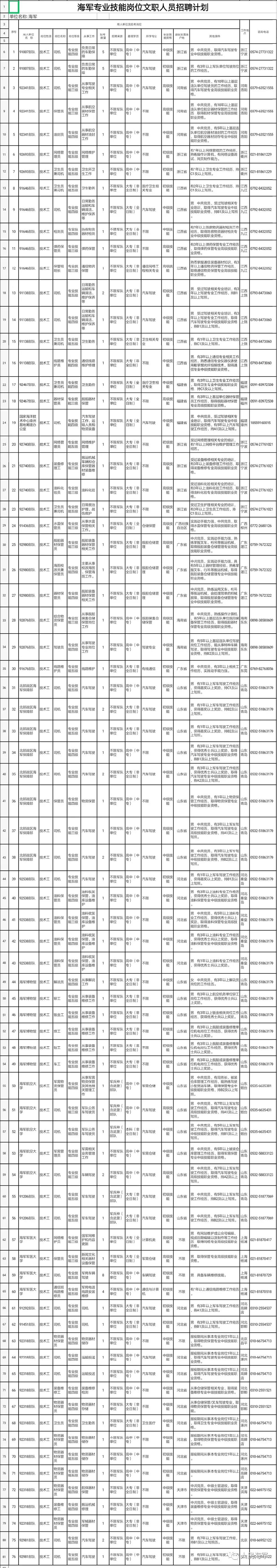 2020年度退役士兵福利來(lái)啦。海軍將面向全軍2020年度退役士兵招聘專(zhuān)業(yè)技能崗位文職人員。一起來(lái)看詳細(xì)公告: 一、招聘崗位 海軍部隊(duì)和院校、科研機(jī)構(gòu)、衛(wèi)生機(jī)構(gòu)等單位專(zhuān)業(yè)技能文職人員崗位,主要包括裝備維修、物資器材儲(chǔ)存、衛(wèi)生勤務(wù)、運(yùn)輸投送等,共100個(gè)。(詳細(xì)招聘計(jì)劃見(jiàn)文末) 二、招聘對(duì)象 招聘對(duì)象為服現(xiàn)役滿其軍銜規(guī)定最高年限,今年夏秋季退役和冬季擬退役且選擇自主就業(yè)安置方式的三級(jí)軍士長(zhǎng)以下士兵。 三、招聘條件 (一)政治條件。應(yīng)當(dāng)符合軍隊(duì)招錄聘用文職人員政治考核的標(biāo)準(zhǔn)條件。 (二)資格條件。應(yīng)當(dāng)具有崗位要求的相應(yīng)專(zhuān)業(yè)高級(jí)技能、中級(jí)技能、初級(jí)技能職業(yè)資格。 (三)學(xué)歷條件。應(yīng)當(dāng)具有崗位要求的相應(yīng)學(xué)歷。 (四)年齡條件。應(yīng)聘專(zhuān)業(yè)技能三級(jí)、四級(jí)崗位的,年齡不超過(guò)35周歲;應(yīng)聘專(zhuān)業(yè)技能五級(jí)崗位的,年齡不超過(guò)30周歲。 (五)身體條件。應(yīng)當(dāng)符合軍隊(duì)招錄聘用文職人員體格檢查的標(biāo)準(zhǔn)條件。 (六)其他條件。在符合以上基本條件的前提下,具體聘用條件由用人單位根據(jù)崗位需要確定。 報(bào)考人員年齡計(jì)算、取得學(xué)歷和職業(yè)資格,截止時(shí)間分別為2020年6月30日、12月31日。 四、招聘程序 (一)公布招聘信息。海軍通過(guò)強(qiáng)軍網(wǎng)發(fā)布公告,并公示招聘崗位計(jì)劃。 (二)報(bào)名及初審。報(bào)名時(shí)間為發(fā)布公告之日起至11月25日18:00止。全軍擬退役士兵根據(jù)公布的招聘信息,通過(guò)強(qiáng)軍網(wǎng)招聘工作平臺(tái)報(bào)名。按照?qǐng)?bào)名流程及要求,如實(shí)填報(bào)個(gè)人信息、上傳報(bào)名材料,選擇用人單位和應(yīng)聘崗位。選擇崗位時(shí),需逐項(xiàng)確認(rèn)本人是否符合相應(yīng)條件,并按要求上傳士官證、學(xué)歷證書(shū)、駕駛證正本、職業(yè)資格證書(shū)等資質(zhì)證明材料。報(bào)名截止前,允許改報(bào)應(yīng)聘崗位。各用人單位根據(jù)崗位資格條件,組織對(duì)應(yīng)聘對(duì)象進(jìn)行資格條件初審。海軍于12月4日前在強(qiáng)軍網(wǎng)公布初審合格人員名單。 強(qiáng)軍網(wǎng)招聘工作平臺(tái)網(wǎng)址: http://21.33.193.213/zpbm (三)綜合考核。初審?fù)ㄟ^(guò)人員可于12月5日10:00至10日18:00前,登錄強(qiáng)軍網(wǎng)招聘平臺(tái)打印本人準(zhǔn)考證,憑準(zhǔn)考證、士官退役證和身份證參加用人單位組織的綜合考核。綜合考核主要考察操作技能(60分)和綜合素質(zhì)(40分)。綜合考核于12月15日前完成,具體時(shí)間安排和形式方法,由各用人單位確定,并以電子郵件、電話等方式通知到每名通過(guò)初審人員。 (四)確定預(yù)選對(duì)象。12月16日前,用人單位按照計(jì)劃招考人數(shù)1:2的比例,根據(jù)綜合考核成績(jī)由高到低確定預(yù)選對(duì)象。其中,綜合考核成績(jī)低于60分的,不得確定為預(yù)選對(duì)象;綜合考核成績(jī)相同的,按操作技能成績(jī)確定排名。各用人單位采取審查原件的方式組織對(duì)擬預(yù)選對(duì)象的資格條件審核,不合格人員不得確定為預(yù)選對(duì)象。 (五)體格檢查和政治考核。12月20日前,用人單位組織預(yù)選對(duì)象在規(guī)定的醫(yī)療機(jī)構(gòu)進(jìn)行體格檢查。報(bào)考人員對(duì)體檢結(jié)果有疑問(wèn)的,可以在接到體檢結(jié)果3日內(nèi),向用人單位申請(qǐng)一次復(fù)檢。其中,對(duì)可通過(guò)服用藥物或者其他治療手段影響檢查結(jié)果的項(xiàng)目,體檢醫(yī)療機(jī)構(gòu)不予復(fù)檢,體檢結(jié)論以初檢結(jié)論為準(zhǔn)。符合規(guī)定需要復(fù)檢的,由用人單位組織實(shí)施,體檢結(jié)果以復(fù)檢結(jié)論為準(zhǔn)。12月底前,用人單位組織預(yù)選對(duì)象采取審查原單位出具的組織鑒定材料等方式進(jìn)行政治考核,視情組織延伸考核。 (六)確定擬錄用對(duì)象。2021年1月上旬前,對(duì)體格檢查和政治考核合格的預(yù)選對(duì)象,用人單位綜合衡量德才表現(xiàn)等情況,研究確定擬錄用對(duì)象。1月中下旬,逐級(jí)上報(bào)擬錄用對(duì)象名單,海軍通過(guò)強(qiáng)軍網(wǎng)組織公示,接受官兵監(jiān)督,公示期為5天;用人單位同步將擬錄用情況,通過(guò)電子郵件、電話等方式告知擬錄用對(duì)象。 自愿放棄擬錄用對(duì)象資格的,用人單位可以按照?qǐng)?bào)考人員綜合考核成績(jī)由高到低,依次從體格檢查和政治考核合格的預(yù)選對(duì)象中遞補(bǔ)。 (七)審批錄用。2021年1月底前,對(duì)公示無(wú)異議或反映問(wèn)題不影響錄用的人選,由海軍政治工作部審批。首次聘用合同期限按照文職人員聘用合同管理有關(guān)規(guī)定執(zhí)行,起始日期統(tǒng)一從2021年1月1日起算。 五、溫馨提示 根據(jù)有關(guān)政策法規(guī),專(zhuān)業(yè)技能崗位文職人員的聘用管理和福利待遇有別于管理崗位和專(zhuān)業(yè)技術(shù)崗位文職人員。 退役士兵只有選擇自主就業(yè)安置方式履行完退役手續(xù)后才能應(yīng)聘到
