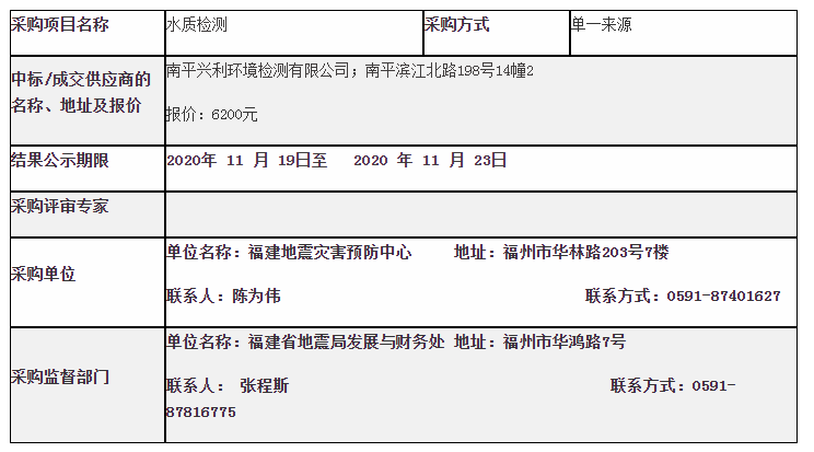 地震災(zāi)害預(yù)防中心水質(zhì)檢測(cè)采購結(jié)果公告