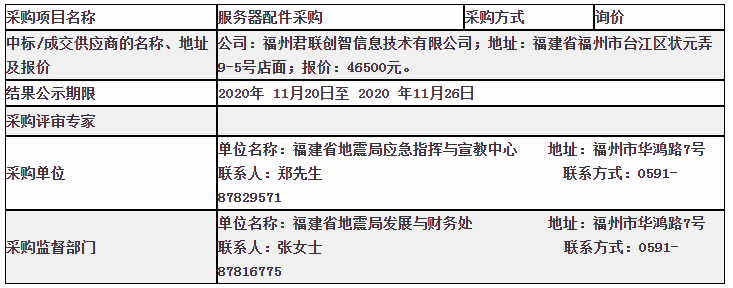 應(yīng)急指揮與宣教中心服務(wù)器配件采購結(jié)果公告