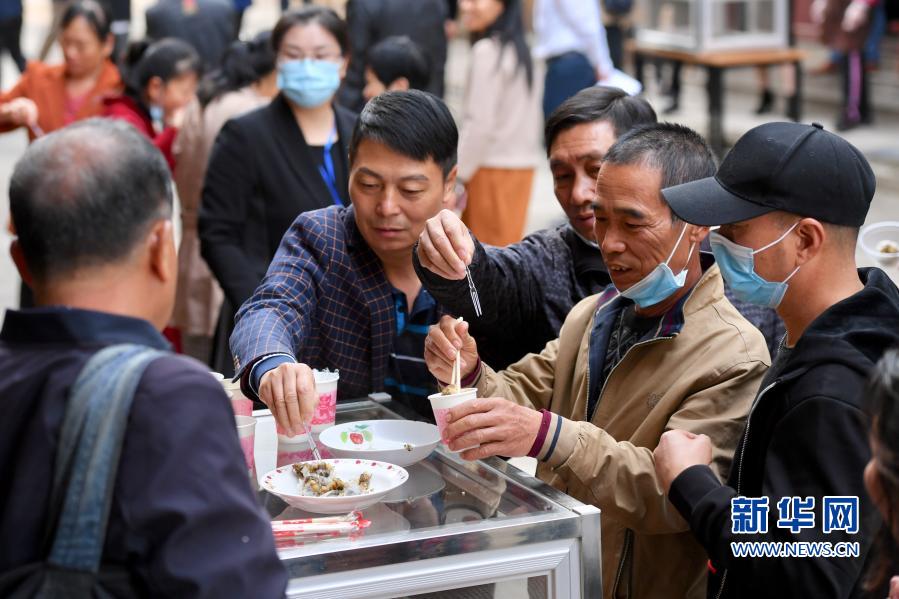 11月23日,游客在俞邦村品嘗美食。新華社記者 姜克紅 攝