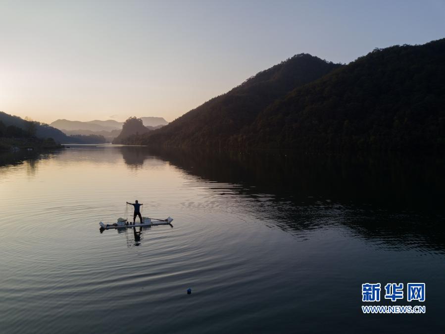 11月20日,常口村村民在村旁的金溪上劃船。新華社記者 宋為偉 攝