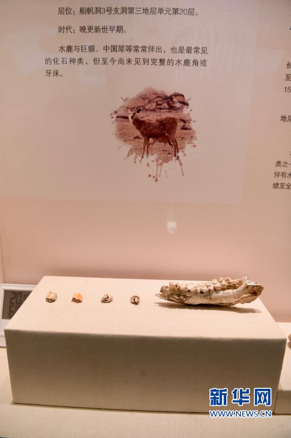 這是位于福建省三明市三元區(qū)巖前鎮(zhèn)的萬(wàn)壽巖遺址博物館內(nèi)展出的動(dòng)物牙齒化石(11月24日攝)。新華社記者 姜克紅 攝