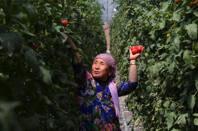 圖為在寧夏原州區(qū)的萬(wàn)畝蔬菜大棚里,農(nóng)戶們正在采摘成熟的西紅柿。 東南網(wǎng)記者 顏財(cái)斌 攝