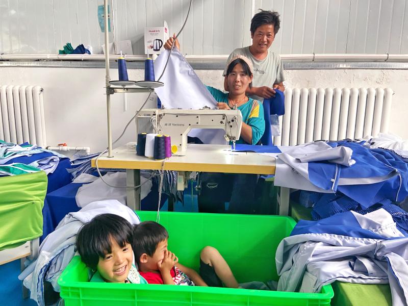 圖為在寧夏固原市福馬扶貧車(chē)間工作的馬志梅夫婦和他們的兩個(gè)孩子。目前,馬志梅夫婦實(shí)現(xiàn)了家門(mén)口就業(yè)和照顧家庭“雙兼顧”的利好。2018年,占地面積150畝的頭營(yíng)鎮(zhèn)福馬村建成,這是寧夏“十三五”易地扶貧搬遷就近安置點(diǎn),頭營(yíng)鎮(zhèn)坪樂(lè)等東部山區(qū)4個(gè)村148戶514人搬遷至此。為了確保移民群眾“搬得出、穩(wěn)得住、逐步能致富”。2018-2020年共投入援寧資金348萬(wàn)元支持福馬村建設(shè)。東南網(wǎng)記者 顏財(cái)斌 攝