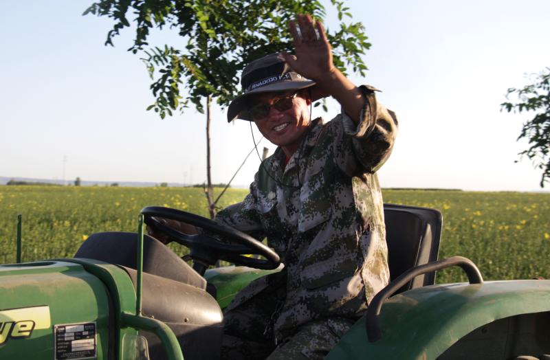 圖為在寧夏紅寺堡的太陽(yáng)山黃花菜基地內(nèi),一位當(dāng)?shù)剞r(nóng)民聽(tīng)說(shuō)記者來(lái)自于福建,主動(dòng)揮手問(wèn)好。 東南網(wǎng)記者 顏財(cái)斌 攝
