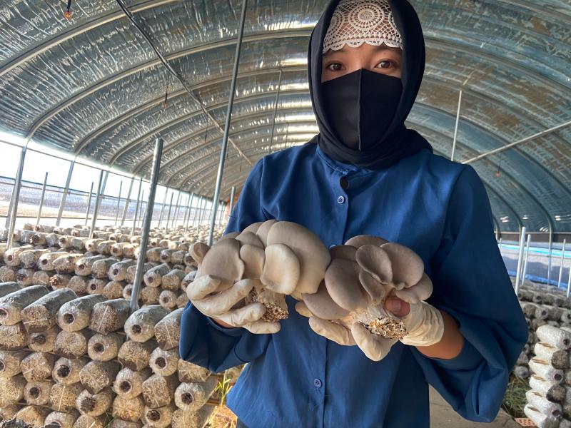 圖為在寧夏同心縣閩寧示范村中,當(dāng)?shù)剞r(nóng)民在閩寧協(xié)作的菇棚里工作,并展示種植成果。寧夏南安村是一個(gè)生態(tài)移民村,也是閩寧協(xié)作示范村之一。近年來(lái),按照“政府引導(dǎo)、村兩委為主體、群眾參與”的發(fā)展思路,和“公司+基地+村集體+農(nóng)戶”生產(chǎn)模式,南安村食用菌產(chǎn)業(yè)實(shí)現(xiàn)了企業(yè)、村級(jí)集體經(jīng)濟(jì)和農(nóng)戶的多贏。東南網(wǎng)記者 顏財(cái)斌 攝