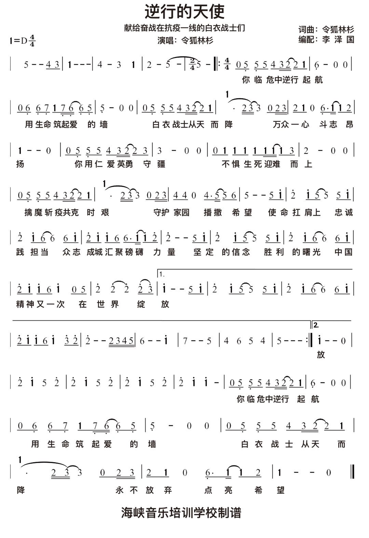 《逆行的天使》歌譜