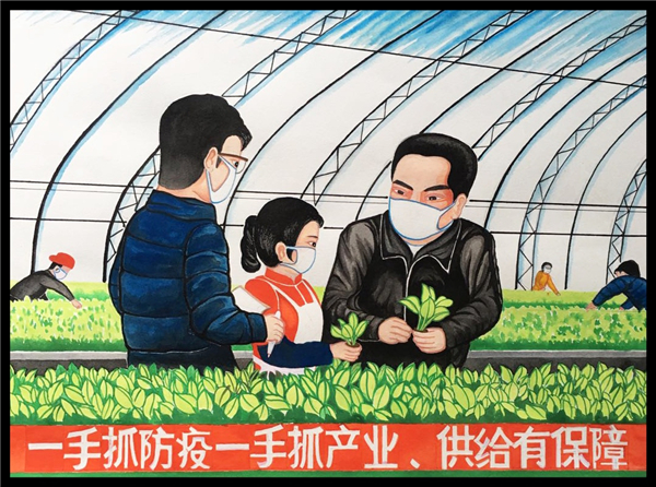 《一手抓防疫,一手抓產(chǎn)業(yè)》同安農(nóng)民畫-楊奕護(hù)
