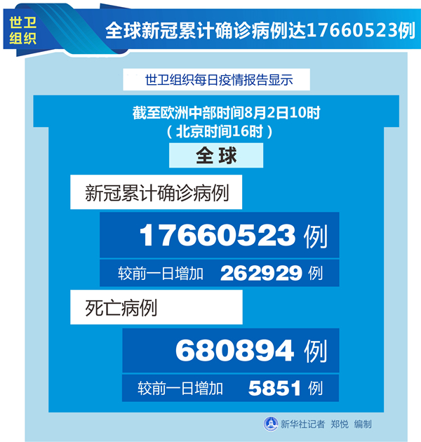 世衛(wèi)組織:全球新冠累計(jì)確診病例達(dá)17660523例