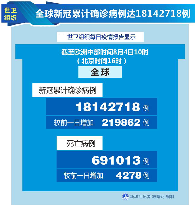 世衛(wèi)組織:全球新冠累計確診病例達18142718例