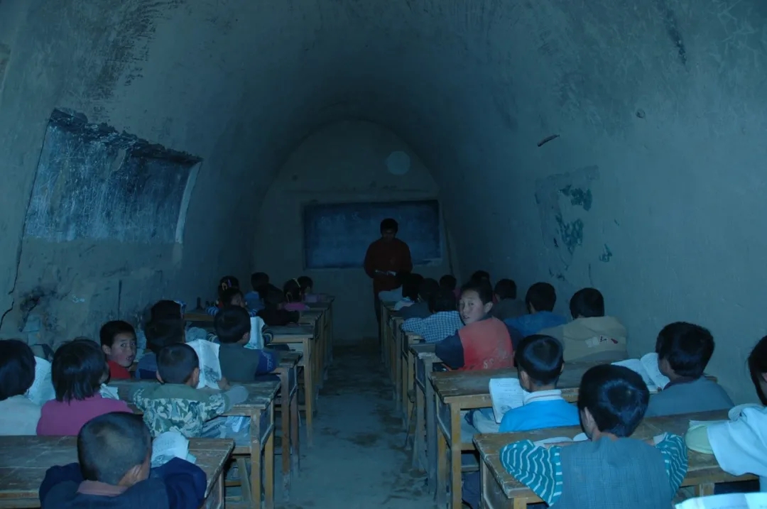 第六屆研支團(tuán)成員在窯洞中的教室上課