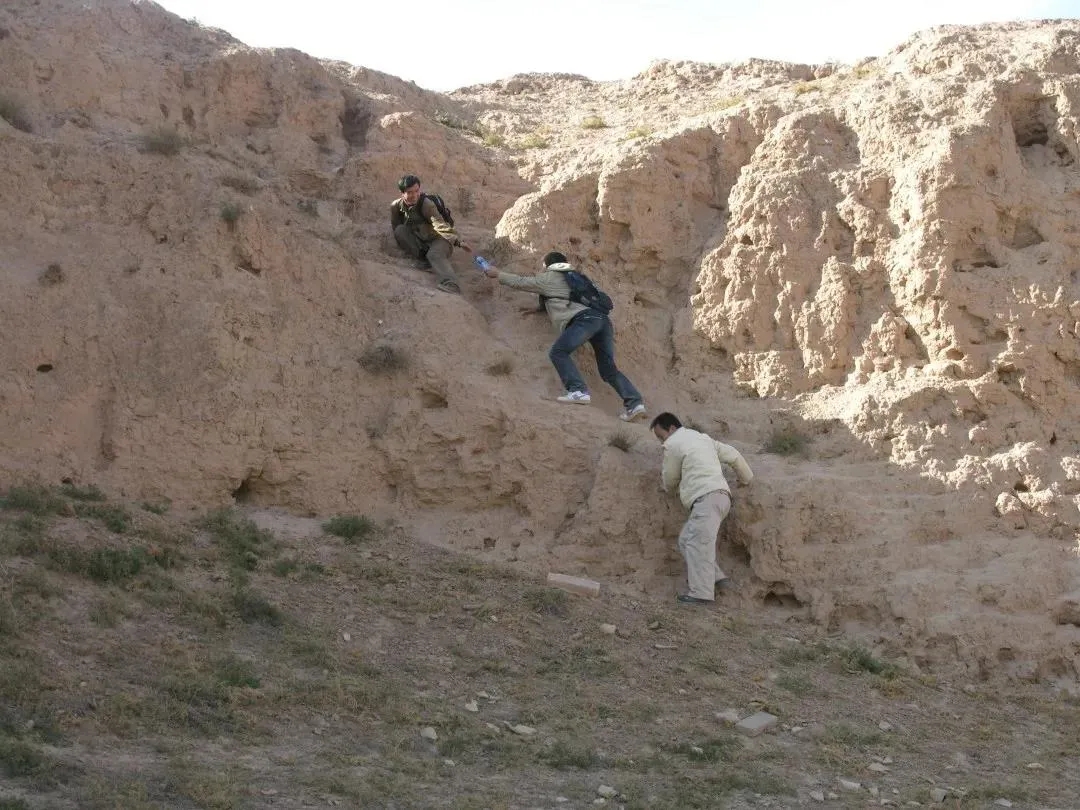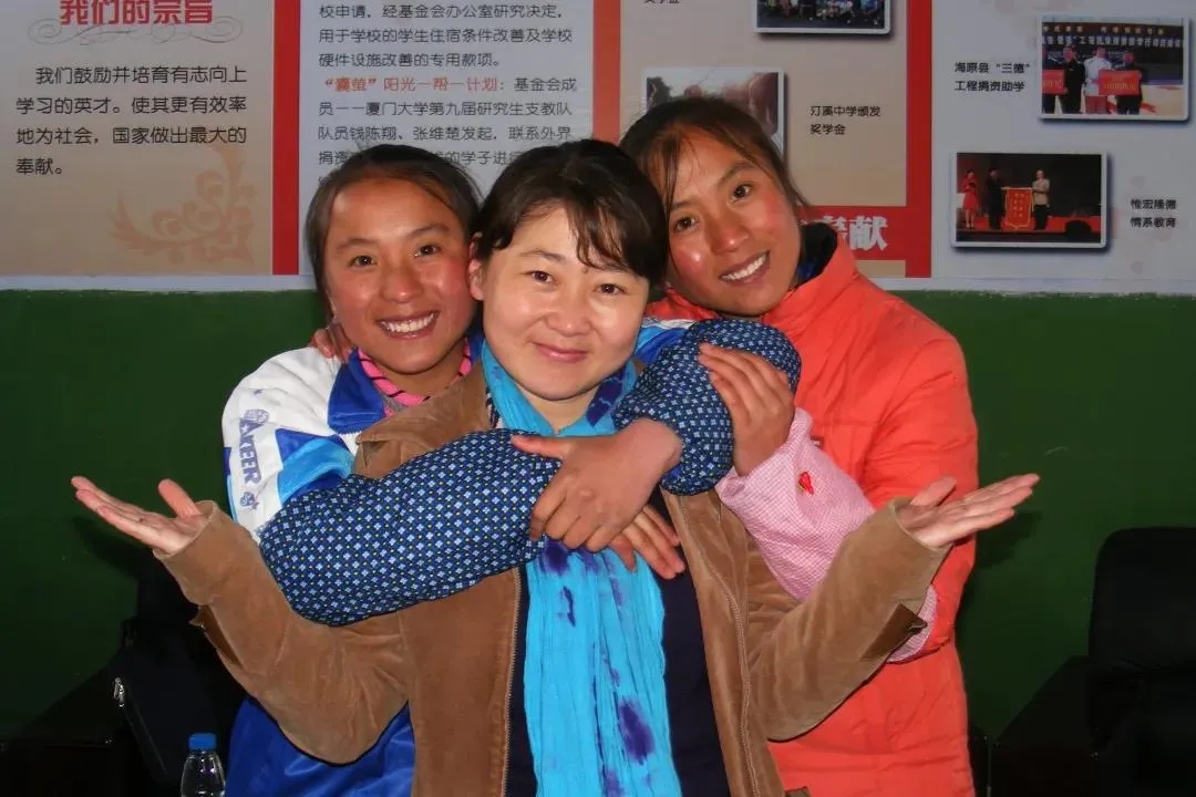 首屆研支團(tuán)成員張秀麗再次回到海原縣時與當(dāng)年受助學(xué)生合影 沒有公路,第七屆研支團(tuán)成員葉楠與其他成員手腳并用跨越一道又一道山峁去學(xué)生家中家訪。