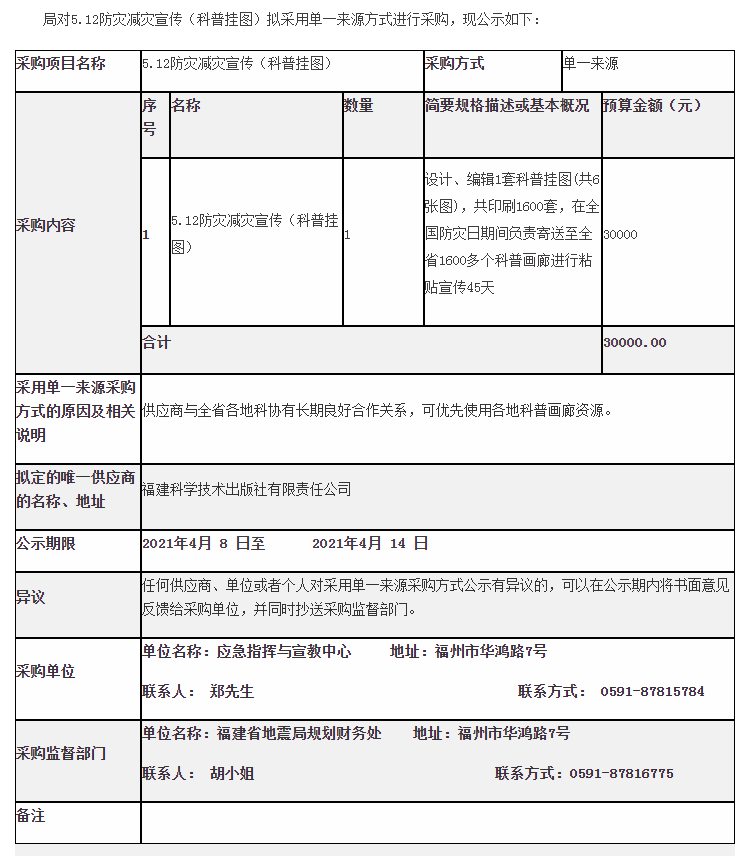 應(yīng)急指揮與宣教中心5.12防災(zāi)減災(zāi)宣傳(科普掛圖)采購公示