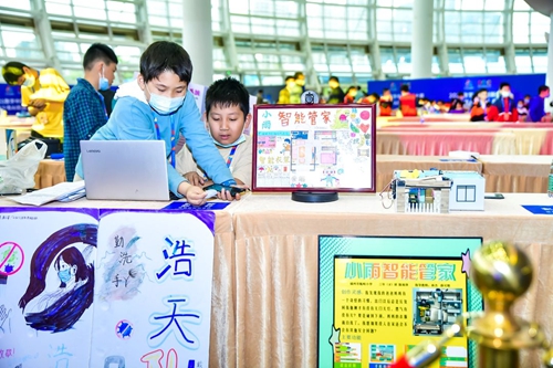 人工智能機器人比賽 以《智能家庭小助手》為主題的創(chuàng)意編程搭建比賽共有20支隊伍進入決賽,參賽戰(zhàn)隊將投稿的創(chuàng)意作品進行現(xiàn)場展示。選手們發(fā)揮自身的創(chuàng)造力和想象力搭建作品,并通過周邊物料對自己的作品展區(qū)進行布置,利用不同的裝飾風格來展示自己的戰(zhàn)隊文化?,F(xiàn)場展現(xiàn)了AI讀書數(shù)娃、智能搭配衣柜、家庭智能控制中心、分體式樓梯清洗系統(tǒng)等各種創(chuàng)意作品。